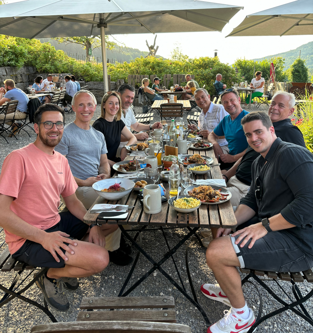 Like in business, it is also paramount to set the right course. Luckily, Michelle handled that part skillfully and brought us safely to the top and timely back to the last stop on the agenda: the extremely inviting Traufganghütte Brunnenthal, where we were treated to a hearty dinner and could relax in the setting sun.